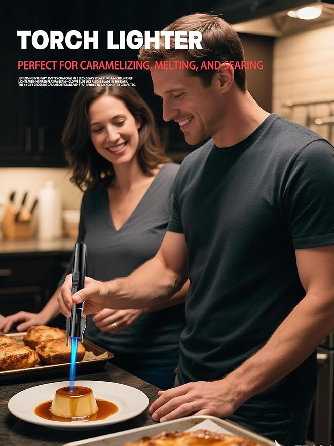 - Jet Flame Windproof Lighter: This Cool Lighter can provide a 1300°C windproof flame, the extended flame of this Blow Torch Lighter can easily ignite firewood during camping, ignite fireplaces in cold weather, make caramel pudding in the kitchen, or light charcoal and add fire to grilled meat during BBQ; This Blow Lighter can even serve as a DIY tool to weld metal, making it a must-have for outdoor enthusiasts, cooking lovers, chefs, craftsmen, and campers