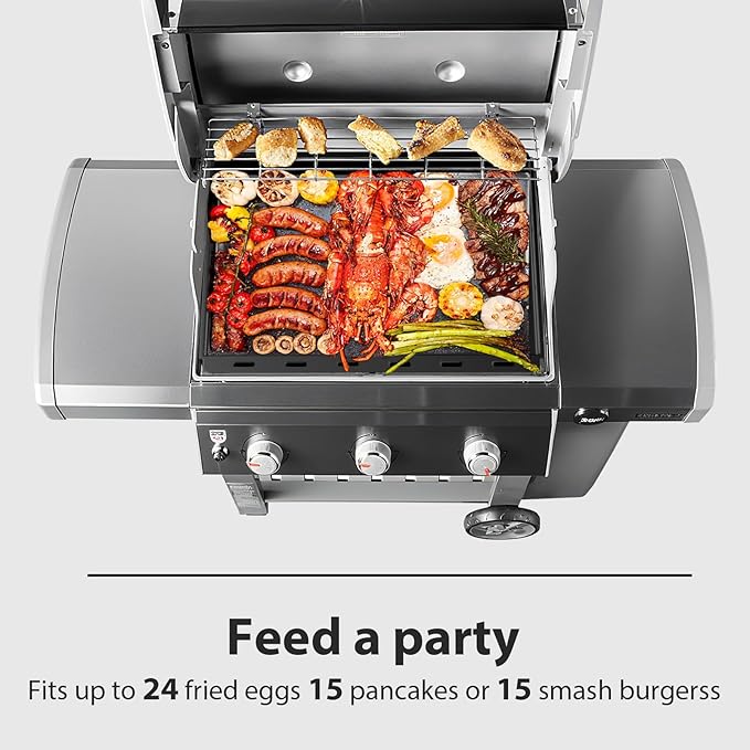 - Full-Size Cooking Area – At 25.2" x 19.5", this insert turns your Genesis 300 into a full flat-top cooking station. It’s an ideal weber genesis griddle insert for making pancakes, bacon, burgers, or veggies all at once—just what you need for family breakfasts or weekend BBQs.