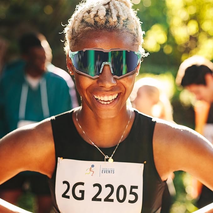 Sports Sunglasses – UV400 REVO Mirror Lens, Ultra-Light TR90 Full Frame, Adjustable Nose Pads, Anti-Slip Arms – Cycling Running Hiking Triathlon – green