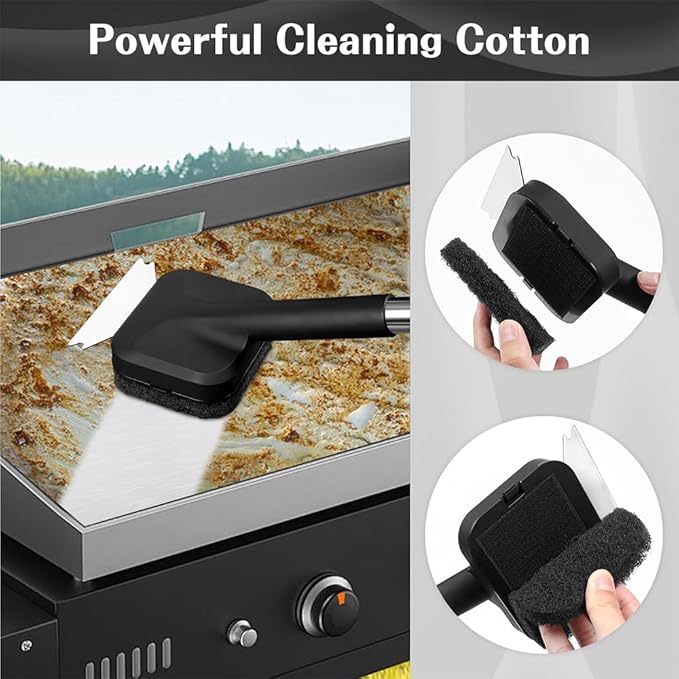 - SAFE & EFFICIENT:Innovative brushless bristles eliminate the risk of metal bristles breaking and getting into food, while still providing powerful cleaning power.Cleaning saves a lot of energy when dealing with those stubborn residues.