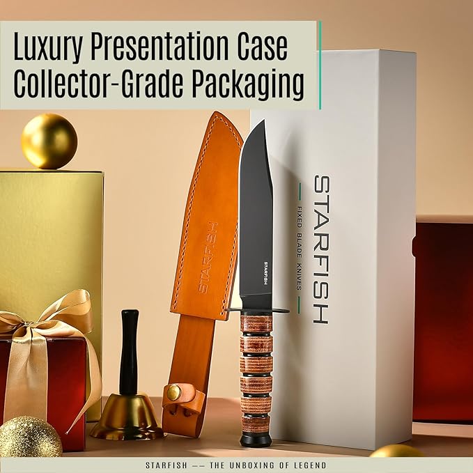 - - Function: STARFISH fixed blade knife features a full tang design ensuring superior strength and durability, Suitable for camping or outdoor adventures. The perfect addition for camping, toolboxes, fishing and hiking gear. Fixed blade knives with leather sheath is a perfect combination of art and craft.