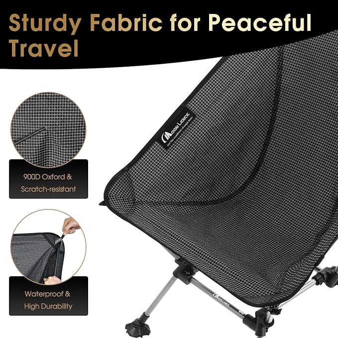 - Premium Durability & Stability: Crafted with aircraft-grade 7075 aluminum alloy, the frame achieves high strength-to-weight ratio. Reinforced with quad-leg base and triple-lock joints, it ensures 360° stability on uneven terrain. The 900D anti-tear Oxford fabric withstands 330lbs loads, paired with non-slip rubber feet for secure placement on wet grass or rocky surfaces