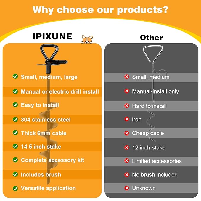 - SECURE GROUND ANCHORING: Features a heavy-duty, deep-drive ground anchor that locks firmly into soil, providing unparalleled stability and preventing powerful dogs from pulling loose. Keeps your pet safely contained.
