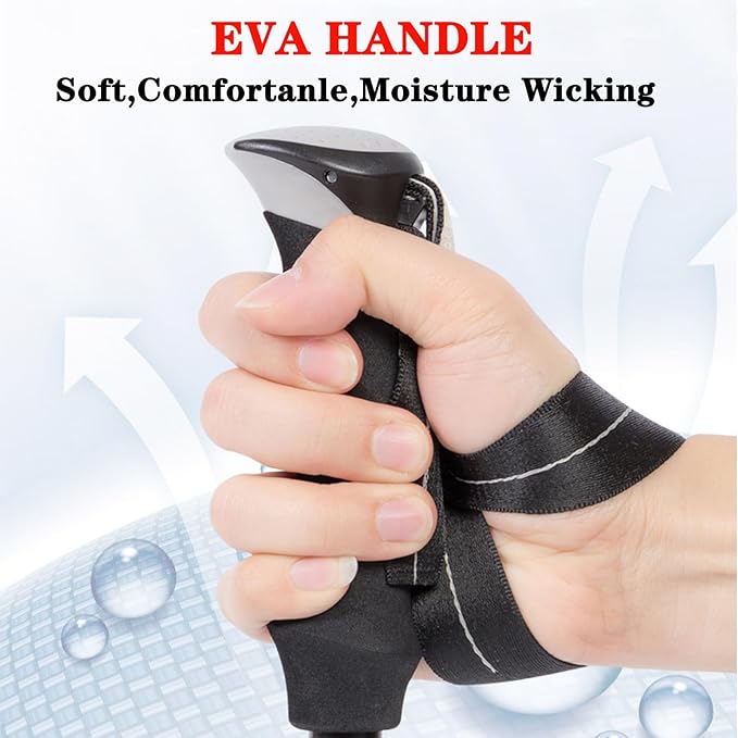 - SUPER COMFORTABLE:EVA Foam Handle with wrist strap, sweat-absorbent, skid resistance groove design,and super comfortable for long time use.14.1" when folded, fitting perfectly in your backpack
