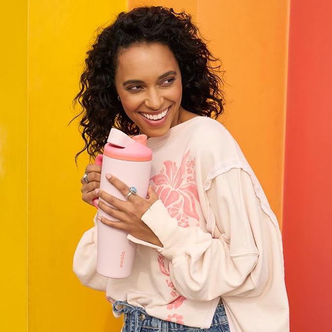 Owala FreeSip Tumbler Insulated Stainless Steel Water Bottle with Built-in Straw and Side Handle, For Travel, Work, School, and Sports, 40oz, BPA Free, Leak Proof, Sparkling Sherbet