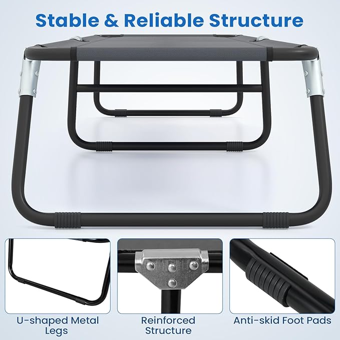 - Stable & Reliable Structure: Supported by 3 U-shaped metal legs, the camping cot provides you with strong and stable support. It bears a weight capacity of 350 lbs. Moreover, the reinforced structure and anti-skid foot pads enhance overall strength and steadiness.