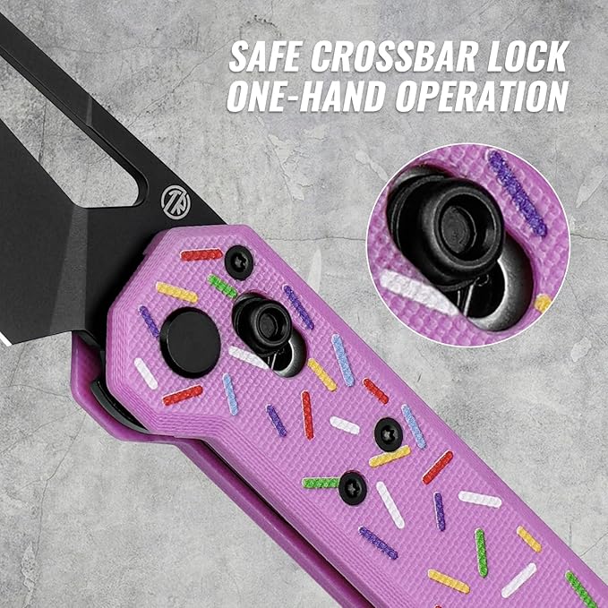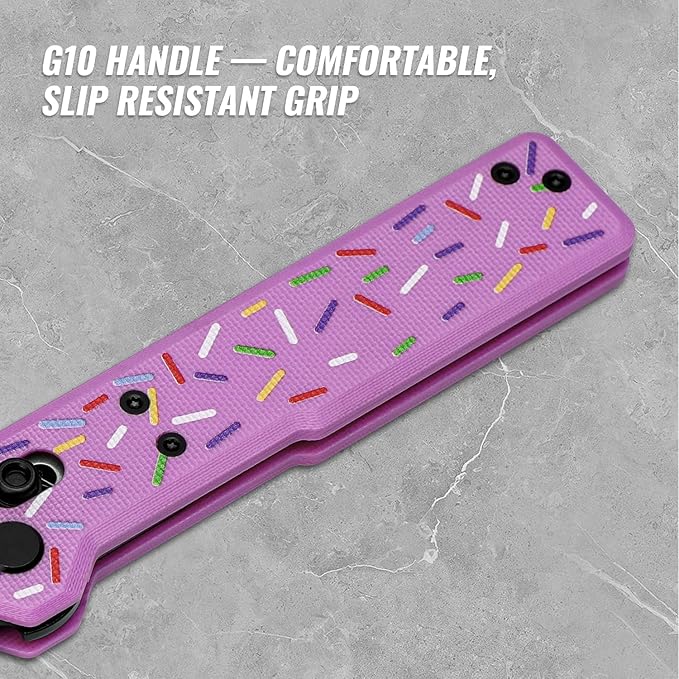 Tarcus Folding Pocket Knife, 3.5" D2 Steel DLC Blade G10 Handle, Lightweight EDC Knife with Crossbar Lock for Men and Women, Ideal for Camping, Hiking, and Survival (Doughnut)