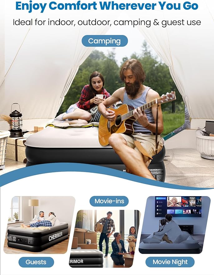 - 2.5-Min Fast Inflation & Deflation: Equipped with a built-in 120V electric pump, this full inflatable mattress with built in pump fully inflates in just 2.5 minutes. Setup is faster than unpacking your overnight bag—and just as easy to pack down into the included carry bag for compact storage