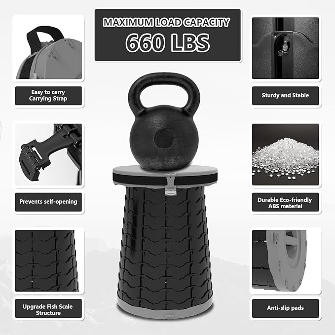 - Highly Adjustable: innovative retractable design allows easy adjustment between 3.3 inches and 19.6 inches without tools. For the elderly, children, tall users or different scenarios such as tents, cars quickly find the most comfortable, the most safe use of the height.