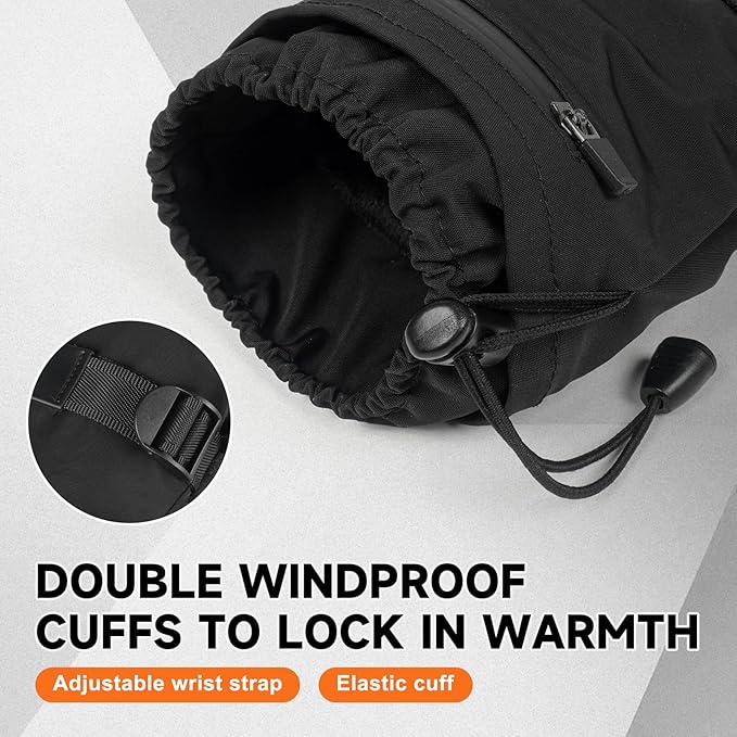 - 【Touchscreen & Thoughtful Design】Heated gloves for men feature highly sensitive touchscreen in the thumb and forefinger, allowing you to use your phone without taking off your heating gloves, which is very practical and convenient. Adjustable wrist loops and elastic straps enhance flexibility while effectively preventing wind and snow from entering inside the wrists. The soft lining inside traps heat effectively while adding a layer of cozy softness against your skin.