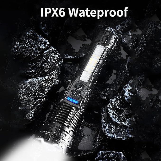 - Super Bright Light:The flash light features an upgraded chip and high-quality lamp beads that provide up to 1200ft of visibility. Whether you're camping, hiking, or doing other outdoor activities, the high lumen brightness will light up your adventures. This flashlight is made of super hard aluminum alloy, impact resistant, waterproof and drop resistant, it is a good companion that can stay with you for a long time.