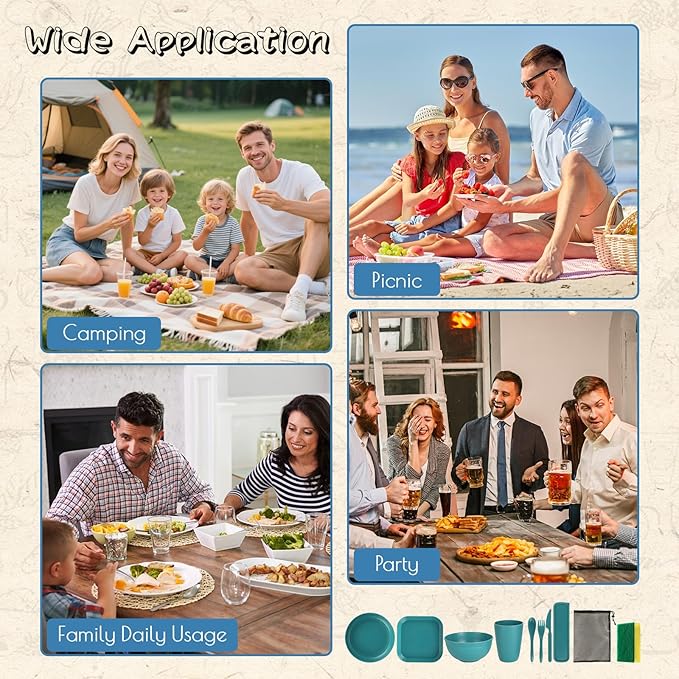 - Thoughtful Matching - Unlike other camping dish set, our camping dish set comes with matching cleaning sponge and organize bags. The cleaning sponge can clean your dorm plates and bowls sets easily, no matter the cups, utensils, plates or bowls. The organize bags can help you to store the camping dinnerware set more conveniently