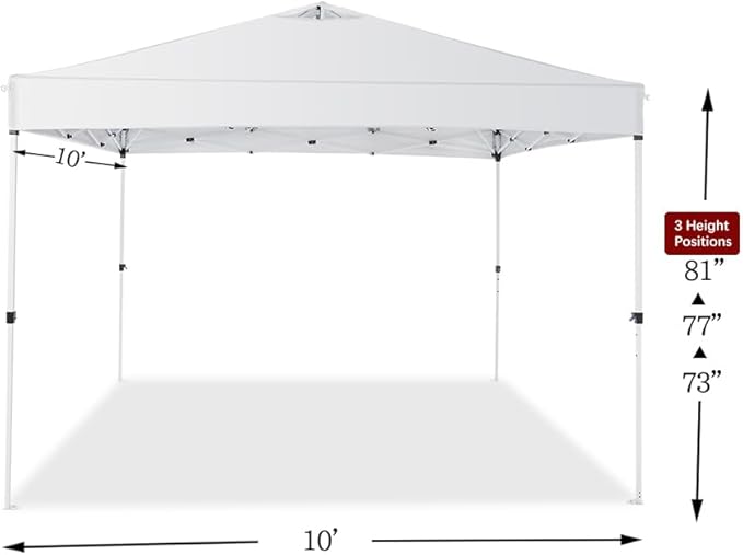- 【Spacious Shade for 8–10 People】Give your group room to relax. The 10x10ft canopy provides 100 sq ft of coverage, 9ft peak height, and folds down to a compact 48"x8.3"x8.4" size. Whether it’s a family BBQ or a game-day party, stay cool and connected—without crowding.