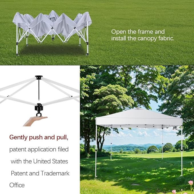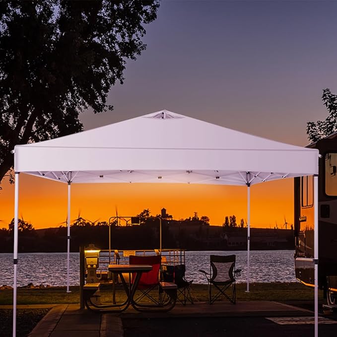 10x10 Pop Up Canopy Tent – One-Person Setup, Waterproof & UV-Blocking, Heavy-Duty Steel Frame, Wheeled Bag & Sandbags – Outdoor Shade for Beach, Camping, Backyard, Tailgate, Events (White)
