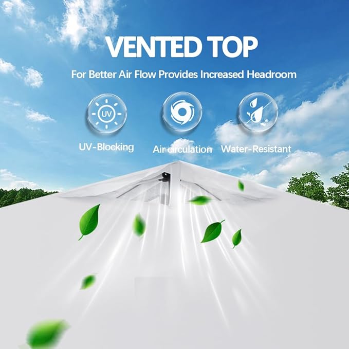 - 【Effortless One-Person Setup】 Set up your 10x10 pop up canopy in seconds with our patented central lock system. Just push once to expand and lock all four legs—no tools required. With 3 adjustable height levels and pinch-free buttons, it’s safe and smooth. Packing up is equally easy: simply pull down the central hub and fold. Ideal for outdoor events, beach, tailgating, or backyard gatherings.