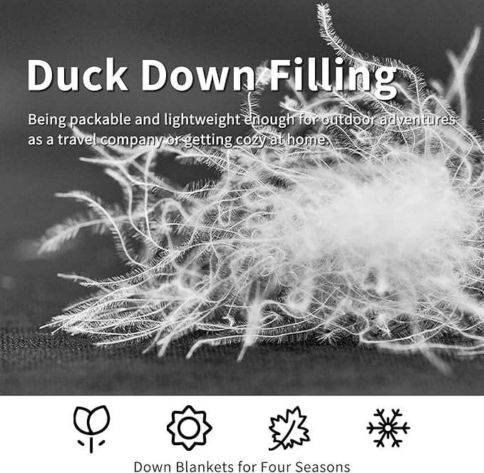zzlamb Puffy Down Camping Blanket Water-Repellent, Down Throw Travel Blanket Portable for Outdoor, Light Warm Quilt for Couch Plane Car Theater Stadium Picnic RV Backpacking Hammock