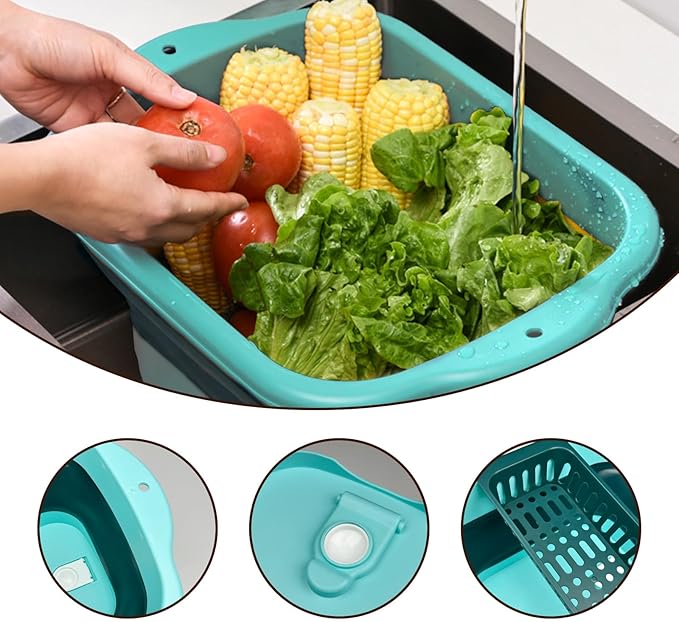 - Portable folding structure: This vegetable washing basket adopts a foldable design, greatly saving space. The folded thickness ranges from 7 inches to 2.3 inches, making it very easy to carry and store, especially suitable for outdoor activities such as camping and hiking