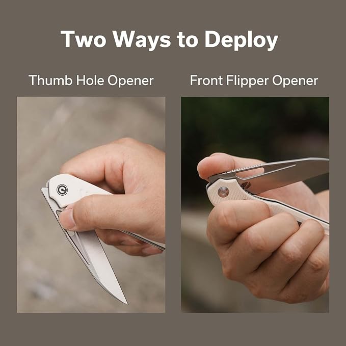 - Two Ways to Deploy: Opens effortlessly with dual-opening mechanisms: a front flipper opener and a thumb hole opener, providing versatility and ease of use
