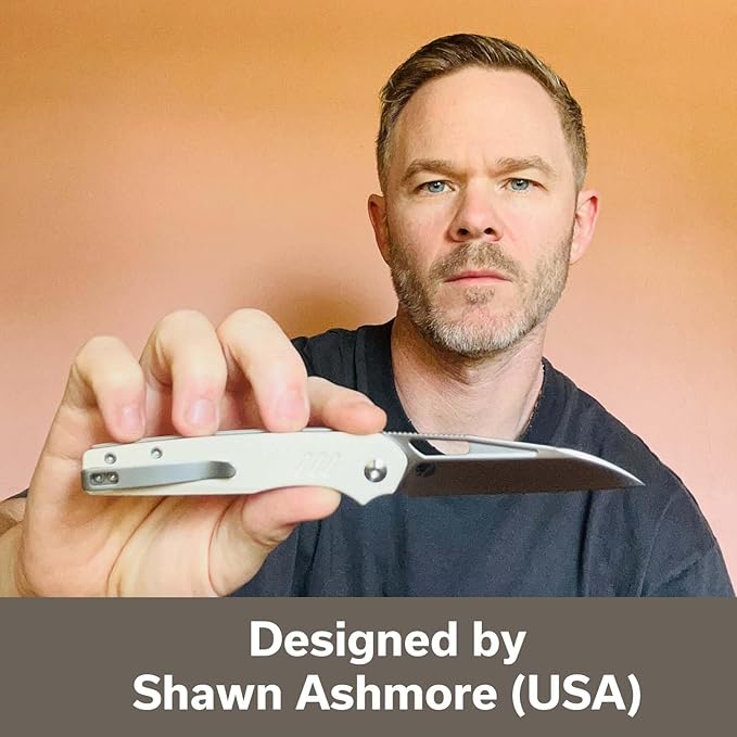 - Designed by Shawn Ashmore (USA): Expertly crafted by designer Shawn Ashmore, this premium pocket knife combines sleek aesthetics with high-performance functionality for everyday carry