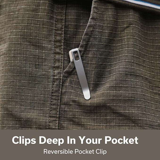 - Convenient Deep-Carry Pocket Clip: The reversible clip keeps your knife low-profile in your pocket while allowing quick access