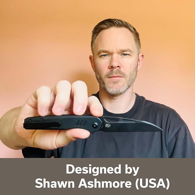 - Designed by Shawn Ashmore (USA): Expertly crafted by designer Shawn Ashmore, this premium pocket knife combines sleek aesthetics with high-performance functionality for everyday carry