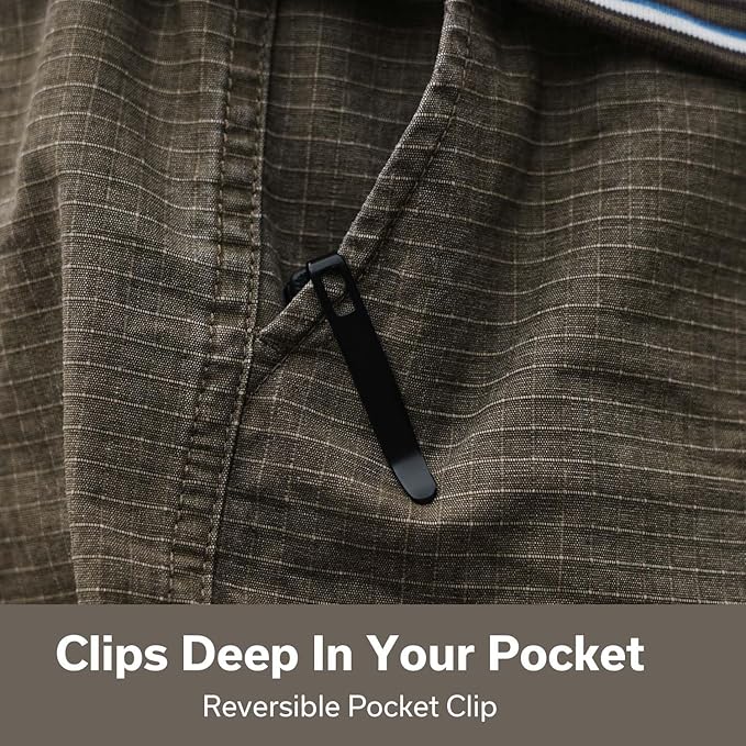 - Convenient Deep-Carry Pocket Clip: The reversible clip keeps your knife low-profile in your pocket while allowing quick access