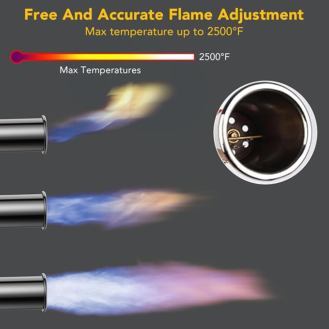 - (POWERFUL & WIDELY APPLIED) The adjustable flashlight can be applied to home life and industrial needs and so on. It especially meets the demand for a powerful flame and is a must-have tool for steak cooking, outdoor camping, industrial welding and glass working. NOTE: If you need a precise and soft flame, please adjust the appropriate small flame to avoid injury.