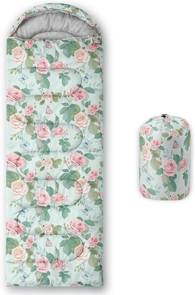 - SUITABLE:The sleeping bag can be used for 3 Seasons.SIZE:90.5"L x 31.5"W Suggenal extreme temperature: 41 ℉ -77 ℉.Applicable in a variety of scenarios,such as Travel camping pajamas party,It's very suitable for you to travel with your children.Half-circle hood with adjustable drawstring,which can keep you warm and prevent your humidity