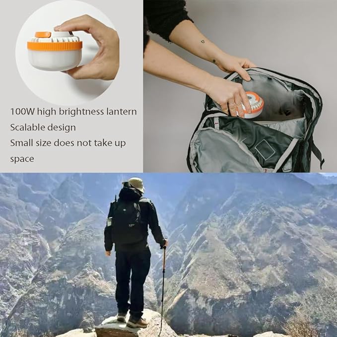 - Retractable lantern -- the lamp can be retractable up and down, the lamp is small, the lamp body is aluminum alloy, easy to store, and does not take up space when going out (Note:When using this outdoor camping light for the first time, please fully charge the battery.To ensure the lantern can be used for a long time, please fully charge it before storing. Storing the lamp with a completely drained battery for more than about 1 month may cause it to fail to charge again)