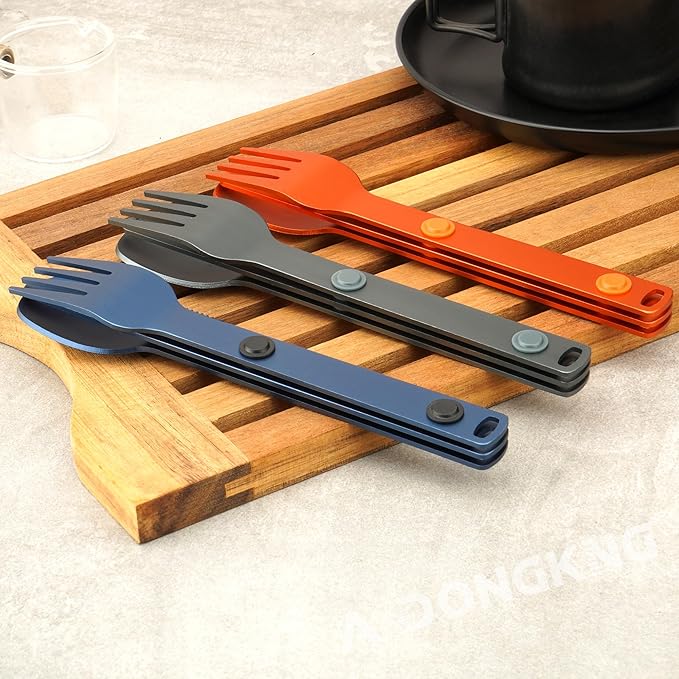 - 🍴【Compact & Magnetic Design For Ultimate Convenience】The AmDONGKING Magnetic Travel & Camping Utensils Set offers a compact, magnetic design that ensures all pieces snap together effortlessly, keeping them securely organized. Whether you’re traveling, camping, or heading to the office, these portable utensils are your go-to solution for hassle-free dining on the move. No more loose utensils in your bag! NOTE: UTENSILS ARE HAND WASH ONLY!
