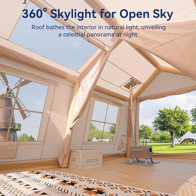- Easy to Set up and Store Blow-Up Tent: One person can easily assemble it alone. Compared to traditional pole tents, no complicated poles are needed. Inflate in just 5 minutes for your luxurious tent. This saves time in setting up camp, allowing for more time to enjoy the outdoors. When deflated, the tent packs down to a compact size, complete with a storage bag.