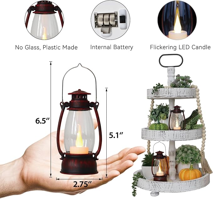 - Compact Design: 5.1-inch(13.3cm) tall mini lanterns with brush-stroked red texture evoke old-west charm. Pair with pumpkins for Halloween table decor, pine garlands for Christmas mantels, or burlap for rustic wedding centerpieces. Durable plastic with metal hooks for indoor/outdoor use.