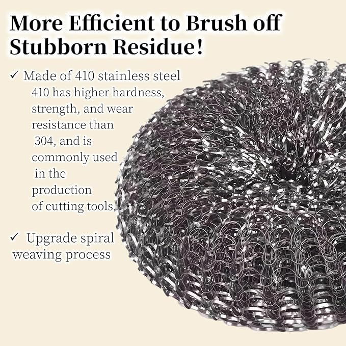 - 🔥 【Heavy-duty Steel Wool Scrubber】Adopted thicker steel thread woven pad(Exceeding 1oz/30g, compared to ordinary ones that are only 0.7oz/20g, or even 0.5oz/15g) with strong stainless handle, more efficient to brush off stubborn residue.