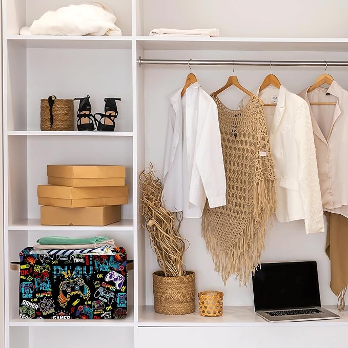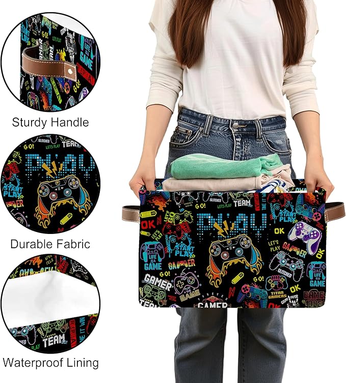 - 【UNIQUE GIFT FOR GAME LOVERS】Our rectangle storage basket is double-sided with the phrase "GAME" and controllers. This stylish and functional storage basket is perfect for organizing your home or game room