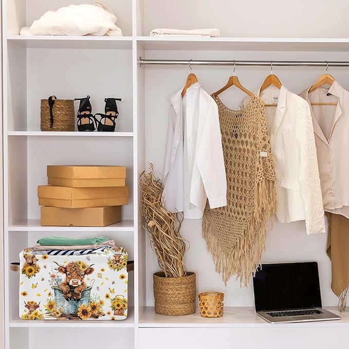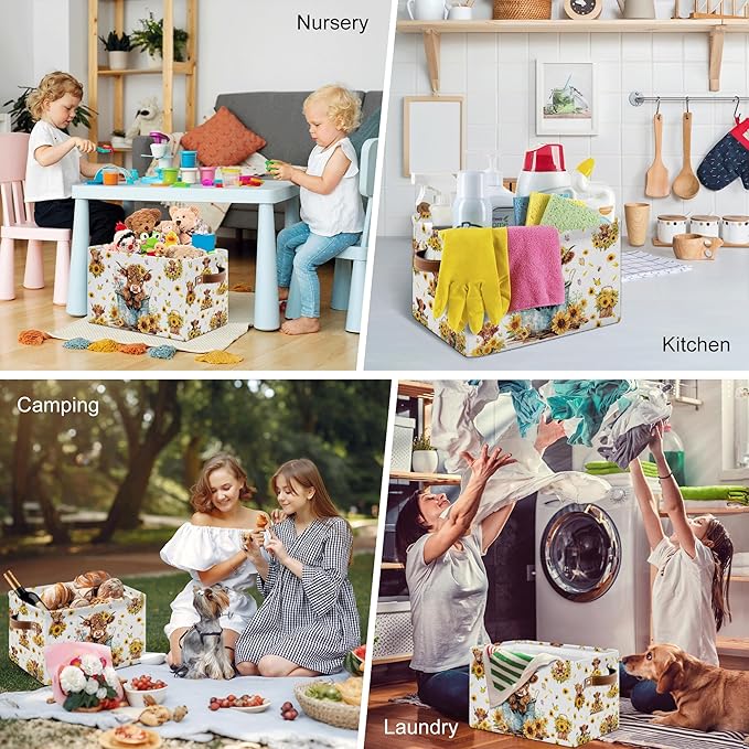 - 【HIGHLAND COW THEMED STORAGE BIN】Our highland cow rectangle storage basket features adorable cow designs. Not only can increase vogue and lovely element for your family, still can be finishing when housework, feel very relaxed