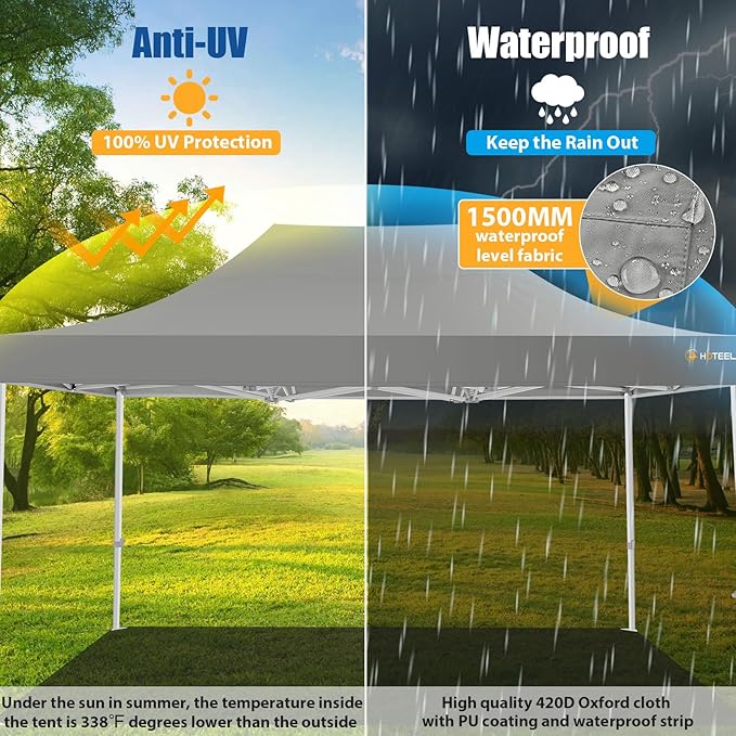 - ๐ใ๐๐ฉ๐ฉ๐ฅ๐ข๐๐๐๐ฅ๐ ๐ญ๐จ ๐๐๐ซ๐ข๐จ๐ฎ๐ฌ ๐๐๐๐๐ฌ๐ข๐จ๐ง๐ฌใ HOTEEL 10x15 heavy duty canopy tent provides 150 SQFT spacious covered space and 3 adjustable heights(134.6"-131.3"-128") for choice, accommodate up to 20 people. Perfect for wedding, birthday party, flea market, business, exhibition, sports competitions, art show, picnics and other events or use in beaches, garden, yards, street, ball field and more.
