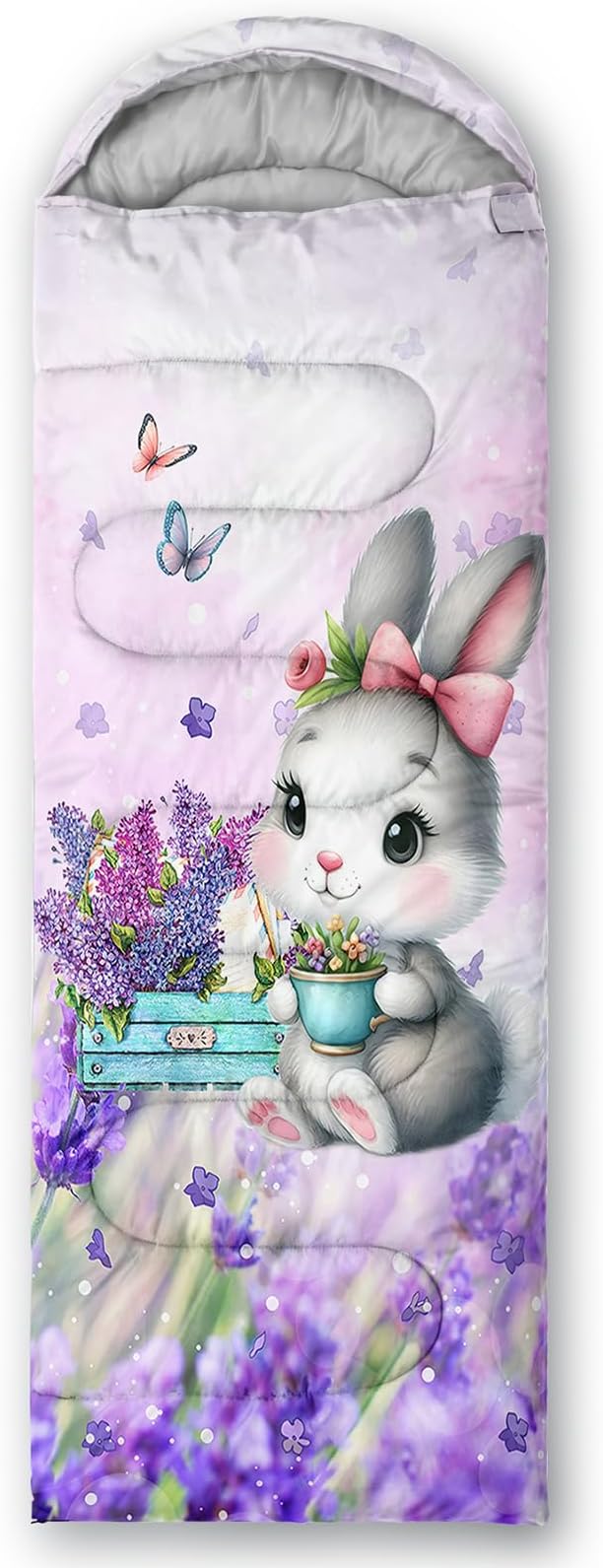 - Unique Rabbit Design:This Rabbit pattern sleeping bag is made of 3D digital printing with vibrant colors and patterns,size: 31W x 90L inches,temperature range: 32℉-77℉ (0℃-25℃),it also also have a weather resistant waterproof design to keep you warm and prevent you from any dampness,can be used in 3 seasons