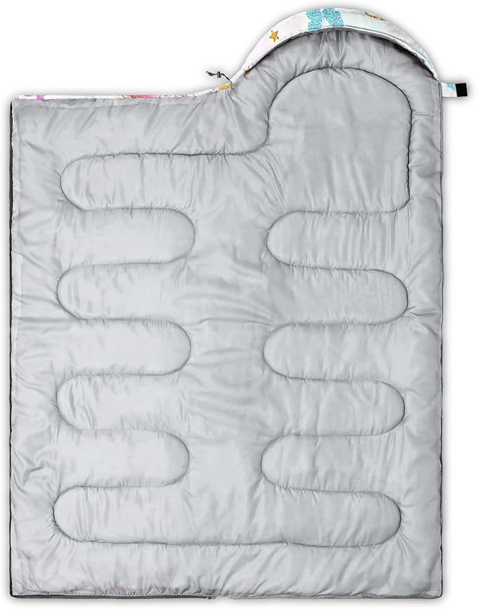 - Unique Butterfly Design:This Butterfly pattern sleeping bag is made of 3D digital printing with vibrant colors and patterns,size: 31W x 90L inches,temperature range: 32℉-77℉ (0℃-25℃),it also also have a weather resistant waterproof design to keep you warm and prevent you from any dampness,can be used in 3 seasons