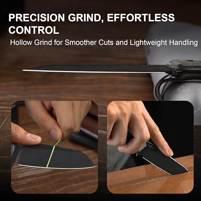 - Precision Grind, Effortless Control: This Kizer fixed blade features a precise hollow grind that reduces blade weight and enhances cutting performance. The refined geometry allows for smoother cuts and improved control, making this small fixed blade knife an excellent choice for both everyday tasks and demanding outdoor use.