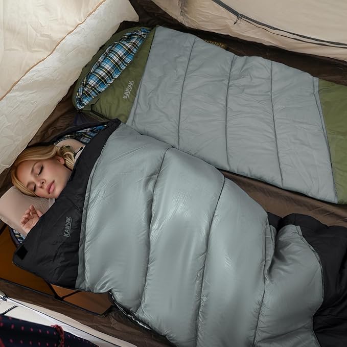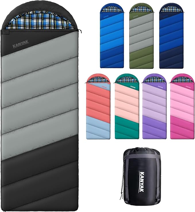 - SLEEPING BAG MATERIAL : Shell Material - 210T Anti-tearing Polyester Fabric which is waterproof and Breathable for optimal warmth and insulation to protect you from the elements. Lining Material - cotton flannel which is cosy and flexible to make you sleep well with KANYAK sleeping bag.