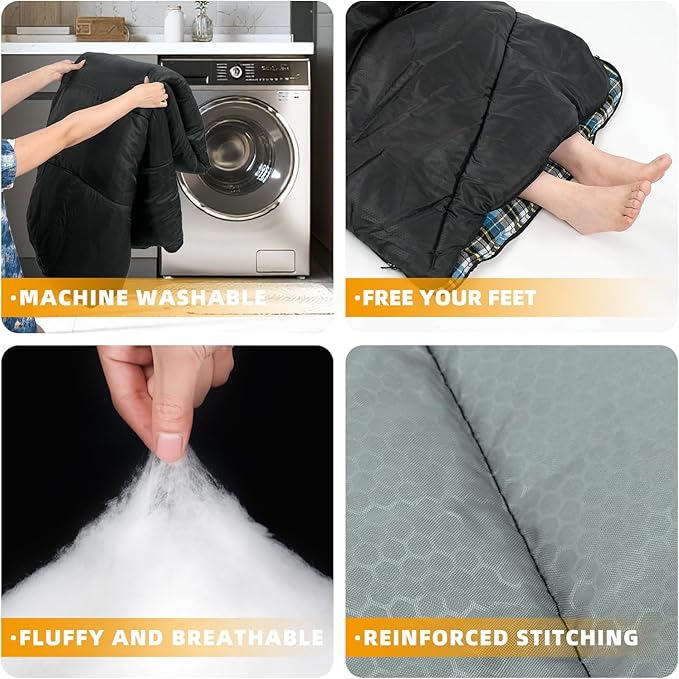 - PLENTY OF SPACE : Sleeping Bag Size 86.6 inch x 32.48 inch. Pack Weight is 4lbs, the compressed packing size is 11''-15.7'' and would take up less space. High-quality three zipper give you more comfortable camping experience.