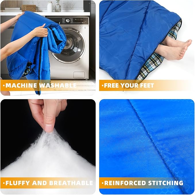 - PLENTY OF SPACE : Sleeping Bag Size 86.6 inch x 32.48 inch. Pack Weight is 4lbs, the compressed packing size is 11''-15.7'' and would take up less space. High-quality three zipper give you more comfortable camping experience.
