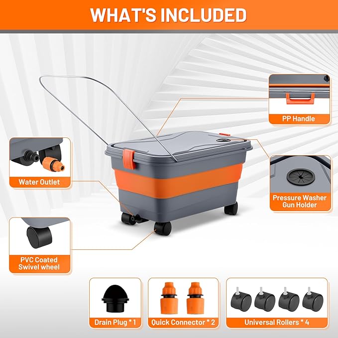 - 🎁【Widely Used】Folding buckets can be used in garages, gardens, terraces, indoors, and outdoors. This is not just a car wash bucket. It can be used as a camping sink, pet bathtub, portable water tank, and even a beverage cooler for RVs and outdoor travel. Very suitable for cleaning windows, floors, or carrying items. Whether it's traveling, doing housework, or entertainment, one bucket can handle everything - foldable, multifunctional, and compact.