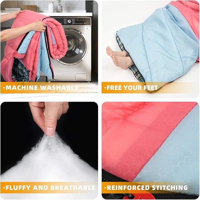 - PLENTY OF SPACE : Sleeping Bag Size 86.6 inch x 32.48 inch. Pack Weight is 4lbs, the compressed packing size is 11''-15.7'' and would take up less space. High-quality three zipper give you more comfortable camping experience.
