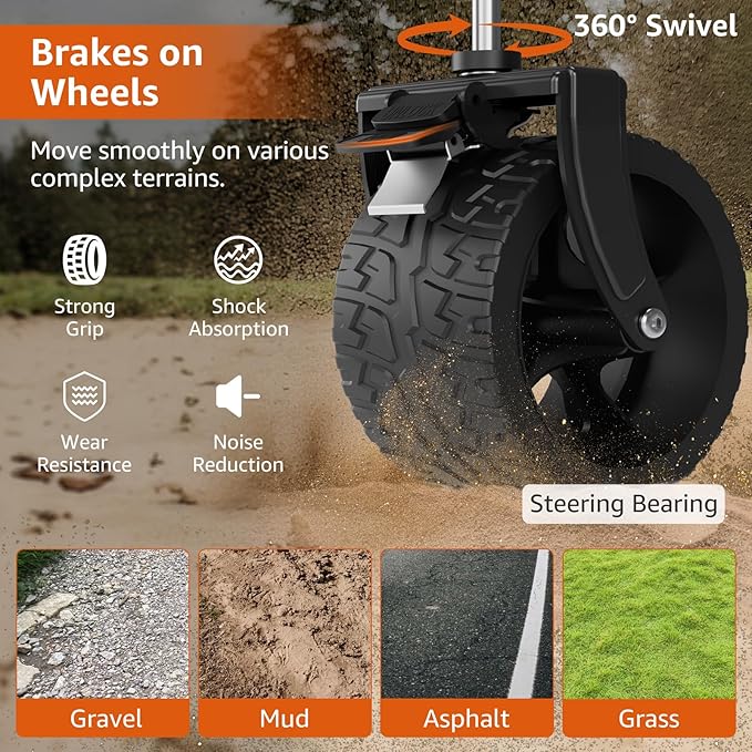 - HANDLES UNEVEN SURFACES WITH EASE: Big all-terrain wheels ensure smooth rolling over bumps and uneven surfaces. It boasts a maximum weight capacity of 450 lbs, and can handle obstacles like rocks and curbs without a problem, although keep in mind soft sand might be a challenge