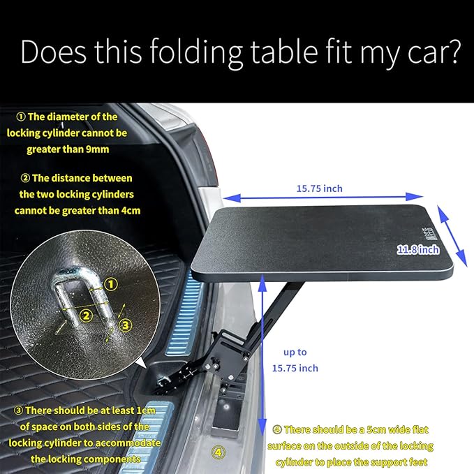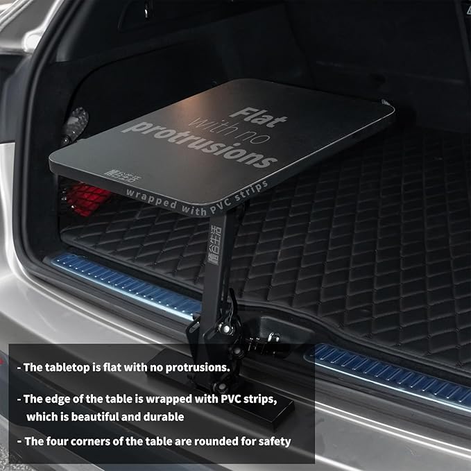 Portable Tailgate Table Folding for SUV Van Sedan - Car Trunk Mount Camping Dining Board Adjustable Metal Stand On-The-Go Workspaces Travel Accessory