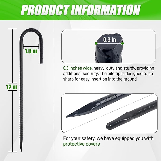- Multi-purpose Use: The rebar stakes is an ideal choice for securing large outdoor equipment. Its windproof function not only provides safety for large equipment but also allows for the construction of a sturdy tent during outdoor camping. Perfect for securing trampolines, swing sets, soccer goals, garden fences, camping tents, tarps and holiday decorations