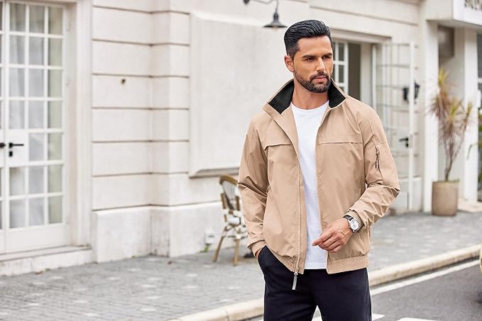 - Versatile Fall & Spring Outerwear – men's light jacket ideal for layering over t-shirts, polos, or sweaters, keeping you comfortable during transitional seasons. Combine with chinos + loafers for business casual. Layer over a t-shirt or polo in spring/autumn. Add a scarf and boots for a more elevated fall look.