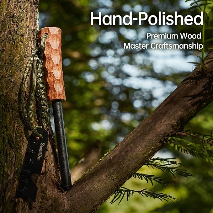 - HAND-POLISHED: Selected premium black walnut wood undergoes a time-consuming, complex process. Each handle is meticulously hand-polished by experienced craftsmen, showcasing the wood's natural and unique grain. Every piece is one-of-a-kind. It's not just a survival tool, but a piece of functional art that reflects good taste