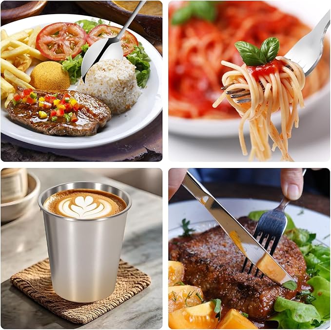 - Premium Material: Crafted from high-quality food-grade stainless steel, this camping cutlery set is built to withstand daily use. It resists rust, corrosion, and scratches, ensuring it remains in top condition for years. Perfect for both indoor and outdoor meals.